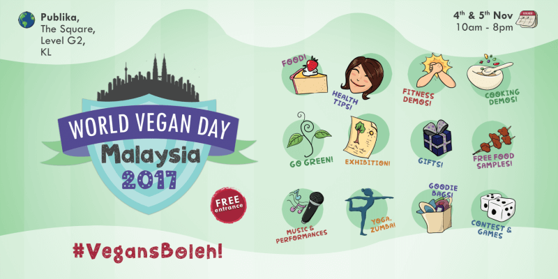Malaysia’s first World Vegan Day will be celebrated on 4-5 November 2017 at Publika, The Square, Kuala Lumpur.